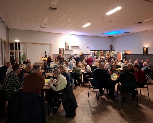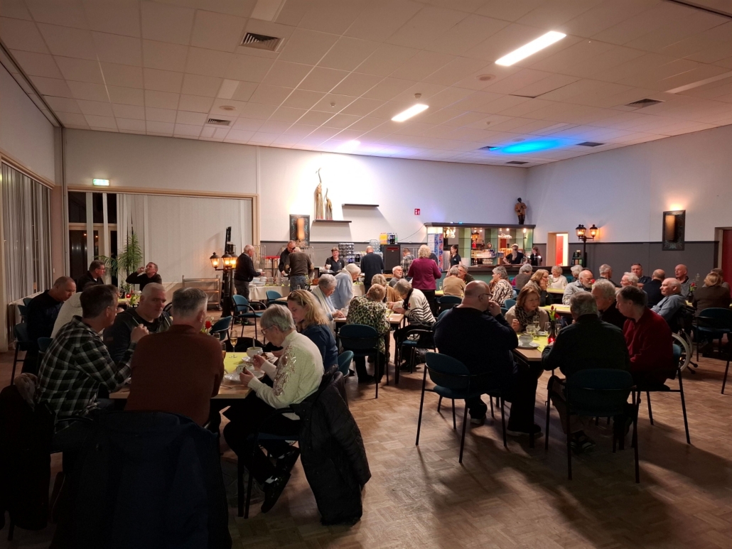 Ruim 50 leden genoten van heerlijke, huisgemaakte snert van de kok van de Niervaert, natuurlijk met roggebrood en spek erbij. En er werd getoost: op elkaar, op de rest van het jaar, en op een actief verenigingsjaar.